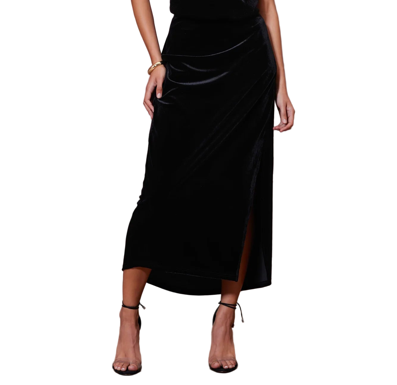 Equal parts striking and elegant, the Luxe Velvet Slip Skirt boasts a sleek, streamlined silhouette with a high waist and front slit for ease. Pair this with its matching the Luxe Velvet Bubble Hem Top for a monochrome velvet moment.