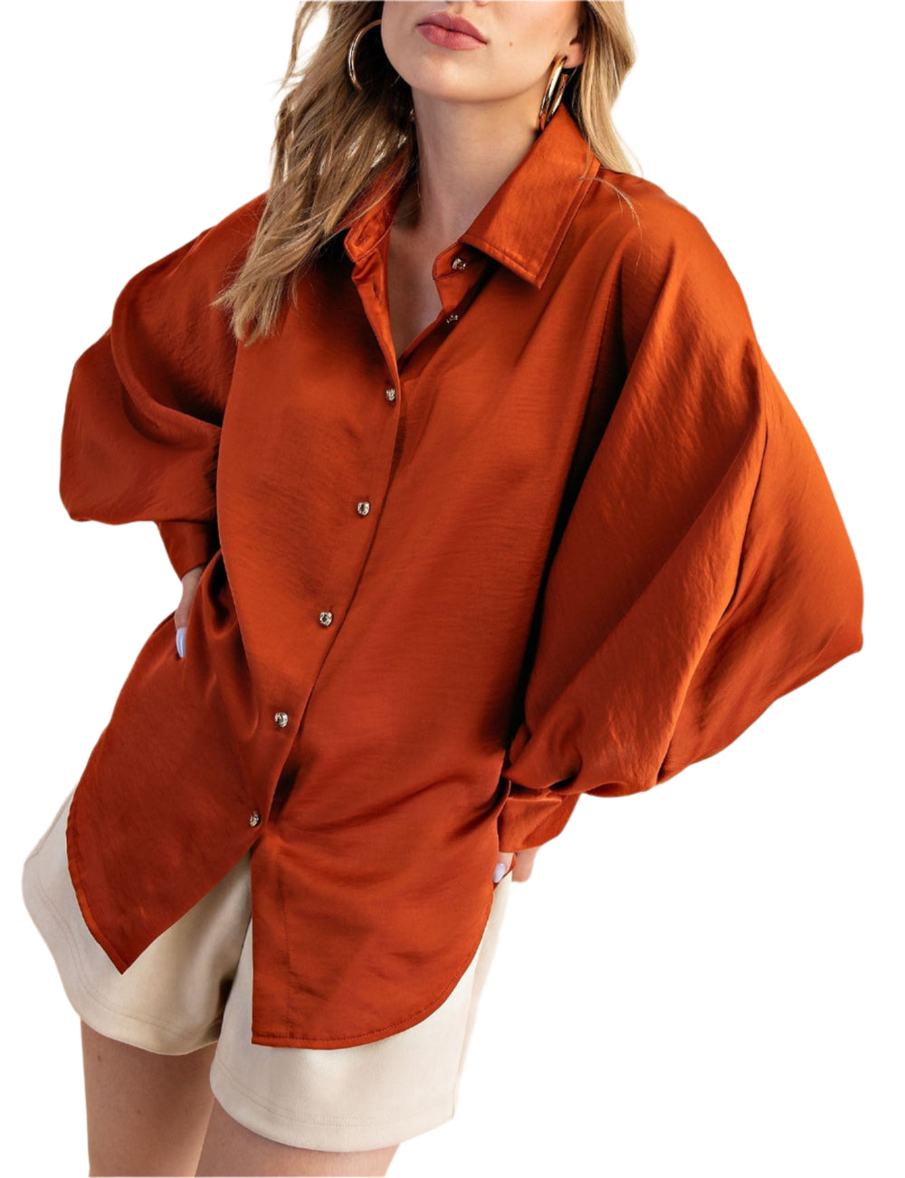 Ruiza Two Tone Mock Neck Blouse in Marigold /Brown