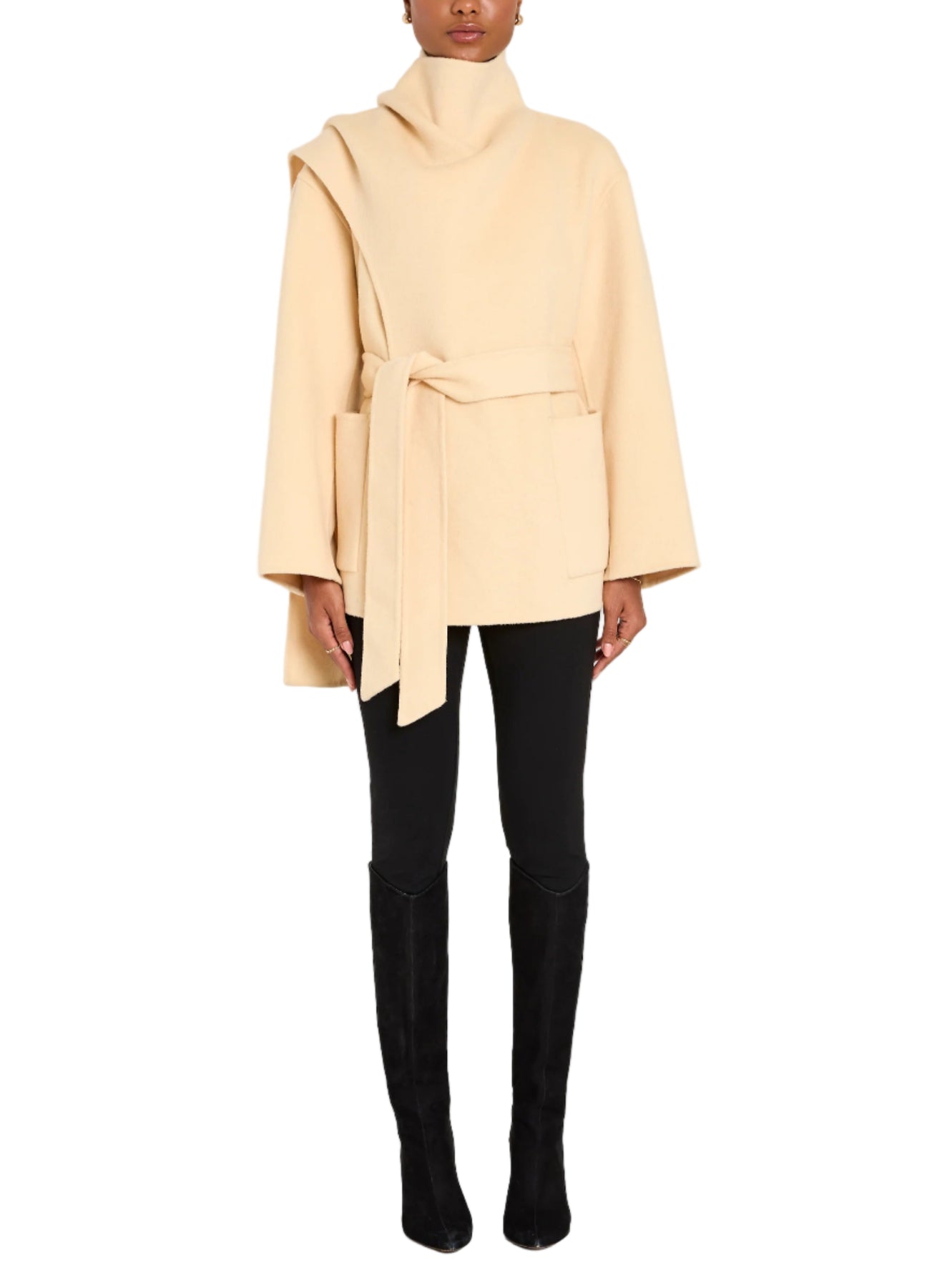 Stay cozy all season in the Kennedy Jacket. Featuring wide sleeves, a high neck and a flattering self-tie belt, this jacket is our go-to outerwear piece for Fall.