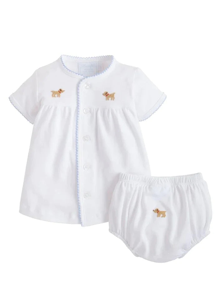 Indulge your little one in 100% Peruvian Pima Cotton with tiny blue lab pinpoint details and picot trim. Sweet, yet practical, they are an essential in every infant's closet!