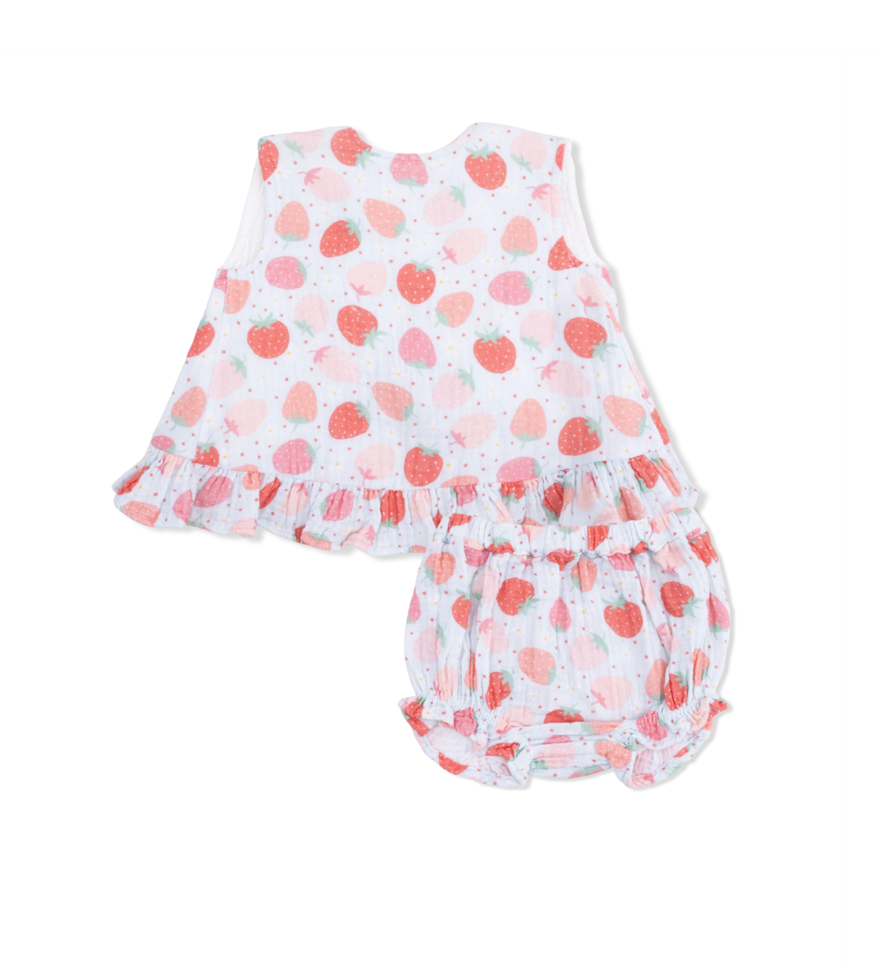 Crafted from lightweight, breathable organic muslin fabric. With ruffle details and a playful design, it’s perfect for twirling, crawling, and everything in between.