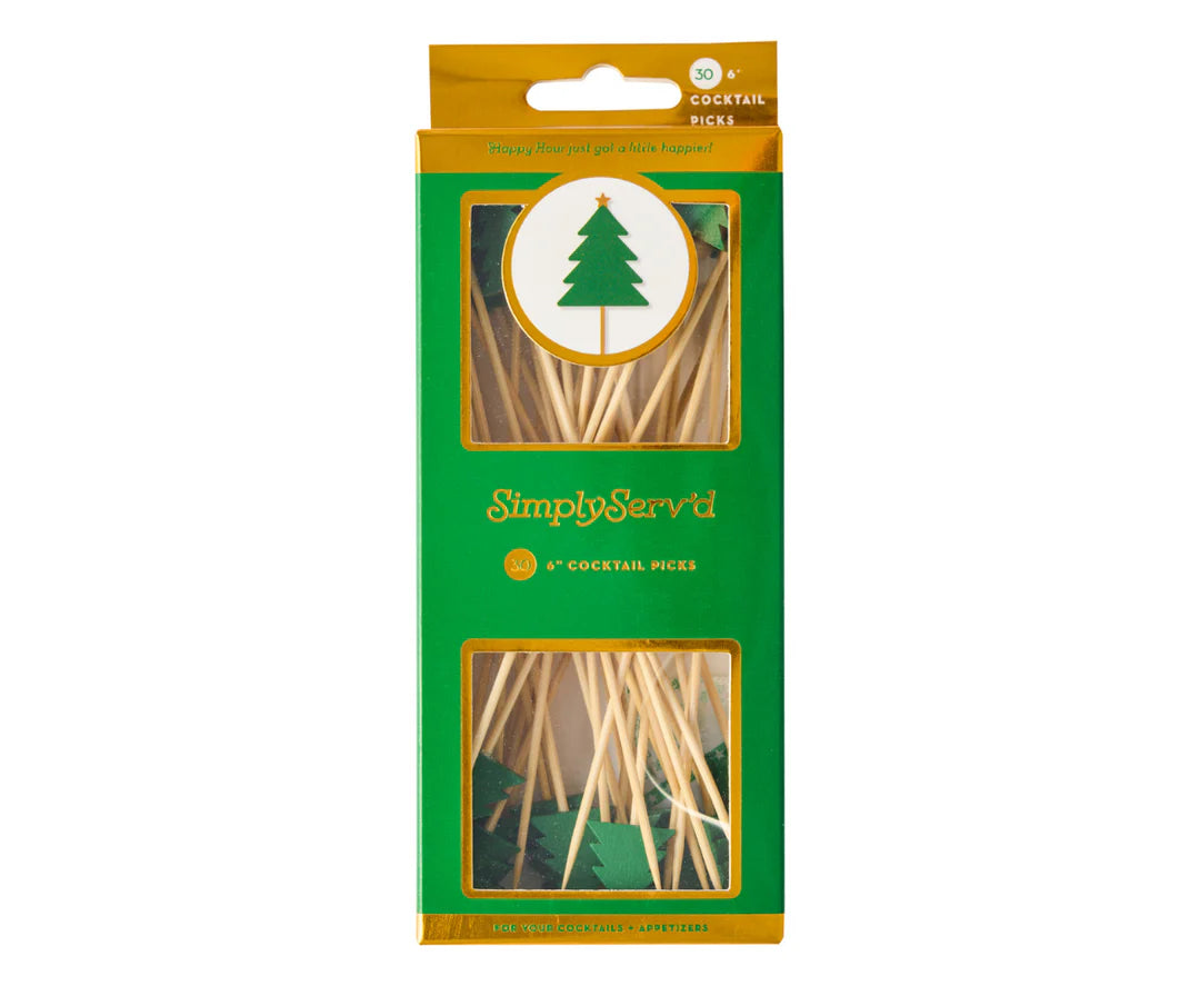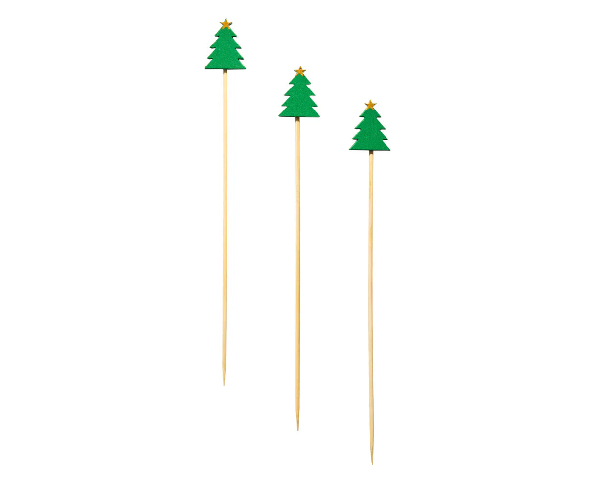 Add some holiday cheer to your cocktails with these wooden christmas picks! These wooden, compostable food, drink, and party picks add style and class to your parties and events. Perfect for Martini's, Cocktails, Food Skewers, Fruit Kabobs, Cheese Boards, Appetizers, Sandwiches, and more!