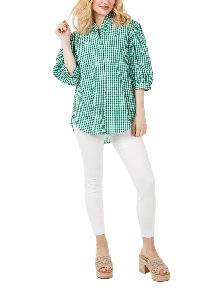 Laura Top in Green Gingham by Holly Shae