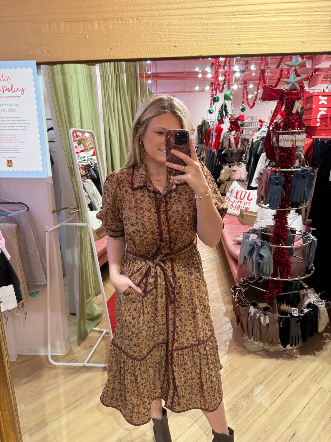 Avery Brown Corduroy Floral Dress