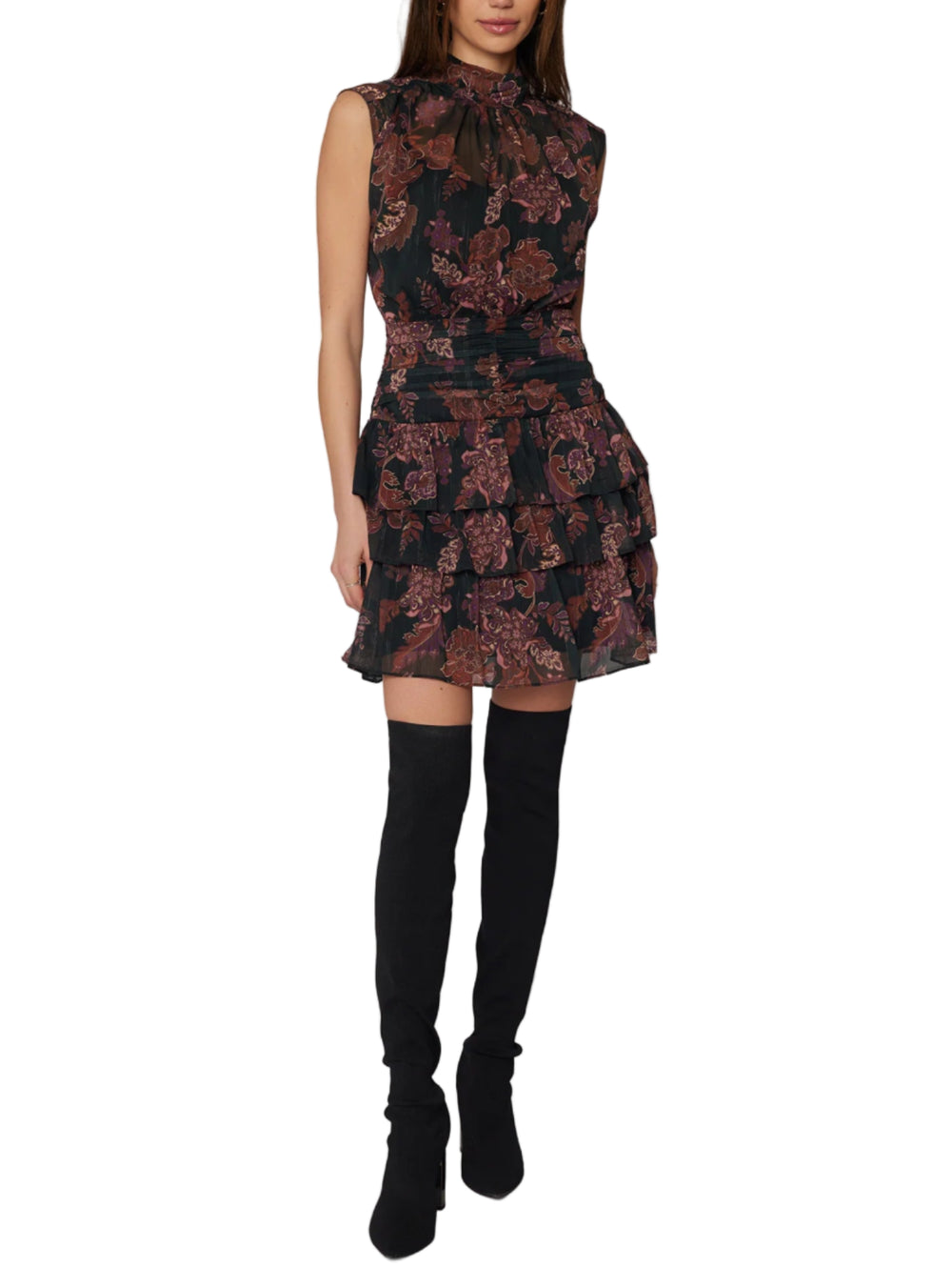 The Whispers Of Bohemia Mini Dress is a true stunner, showcasing a silhouette adored by many. Crafted from luxe lurex chiffon stripe fabric with an elegant floral print, it offers a sophisticated look perfect for your fall and holiday events. This dress combines timeless charm with modern style, ensuring you stand out with effortless grace.