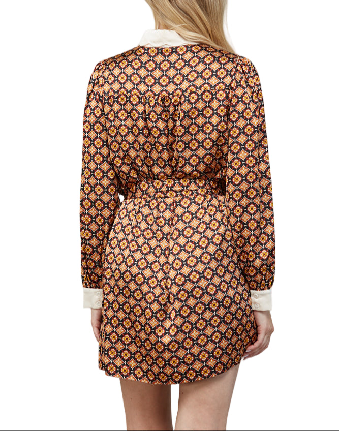 Step out in style with the Marcie Dress in Black Multi, featuring a charming scallop collar that adds a flirty touch to your look. This mini dress combines playful design with effortless elegance.