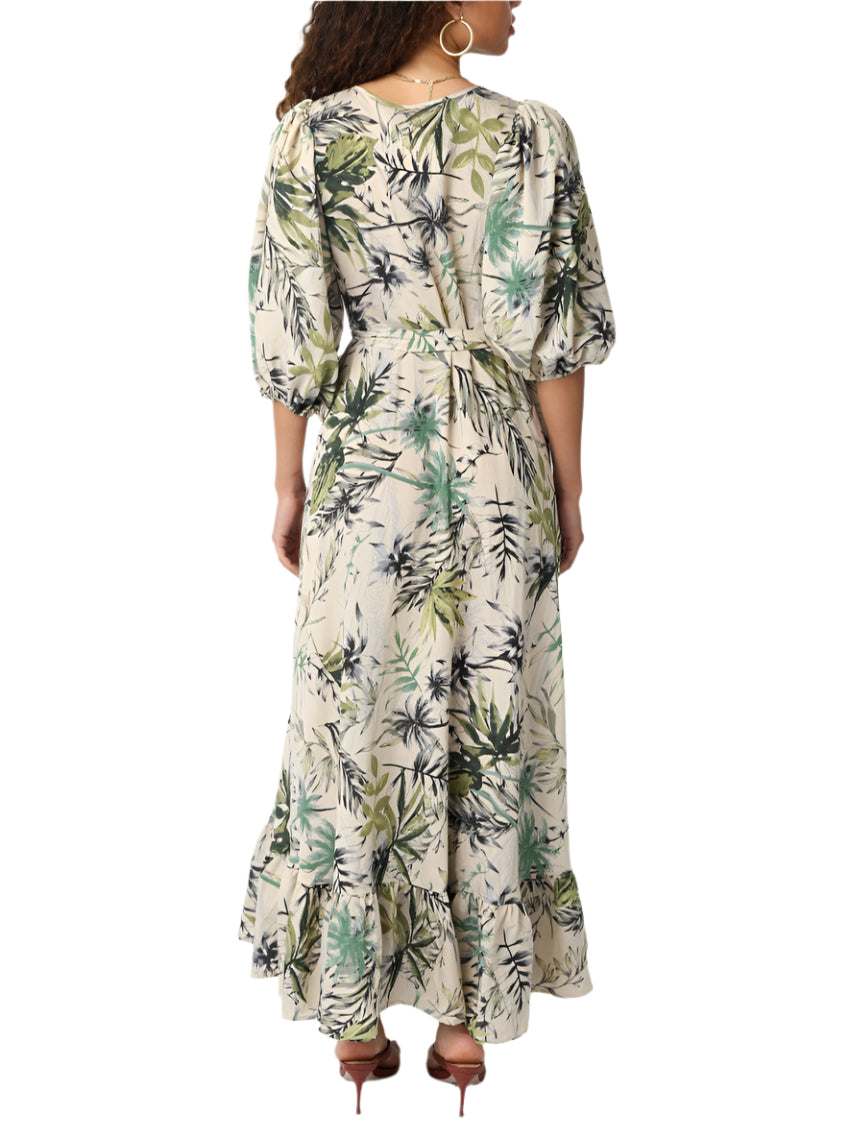 Our Paulina Mix Dress features a belt detail and a flounce hem.