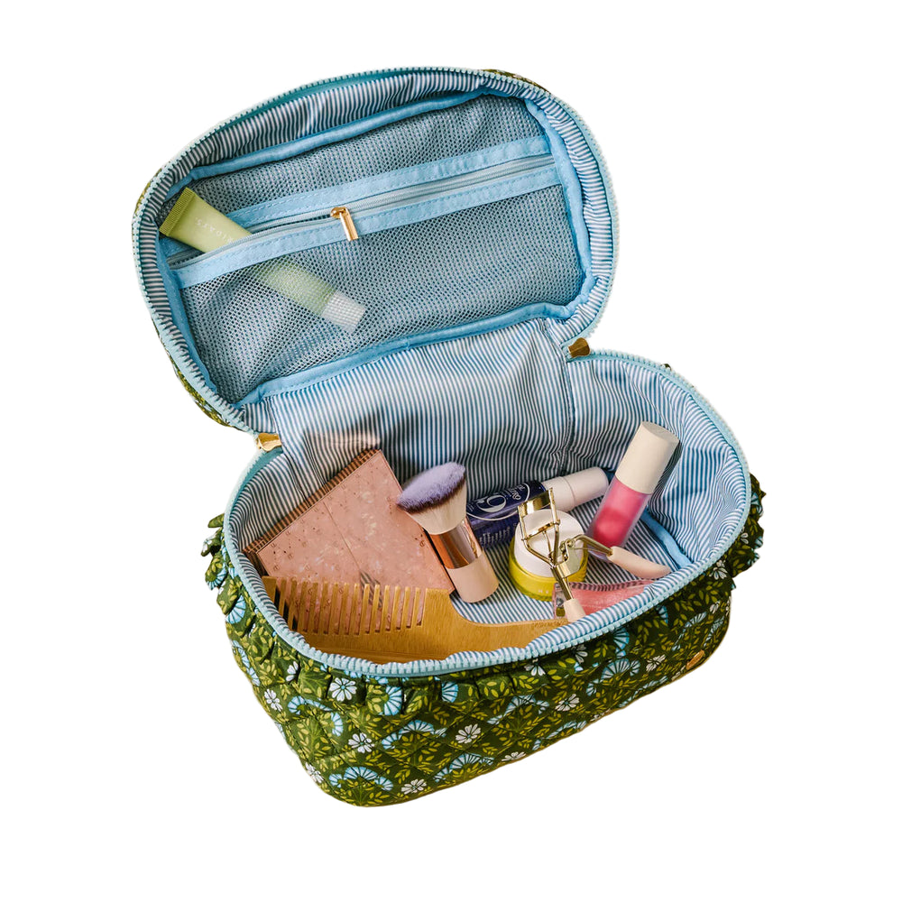 Glam & Go Quilted Cosmetic Bag - Everbloom Forest Green