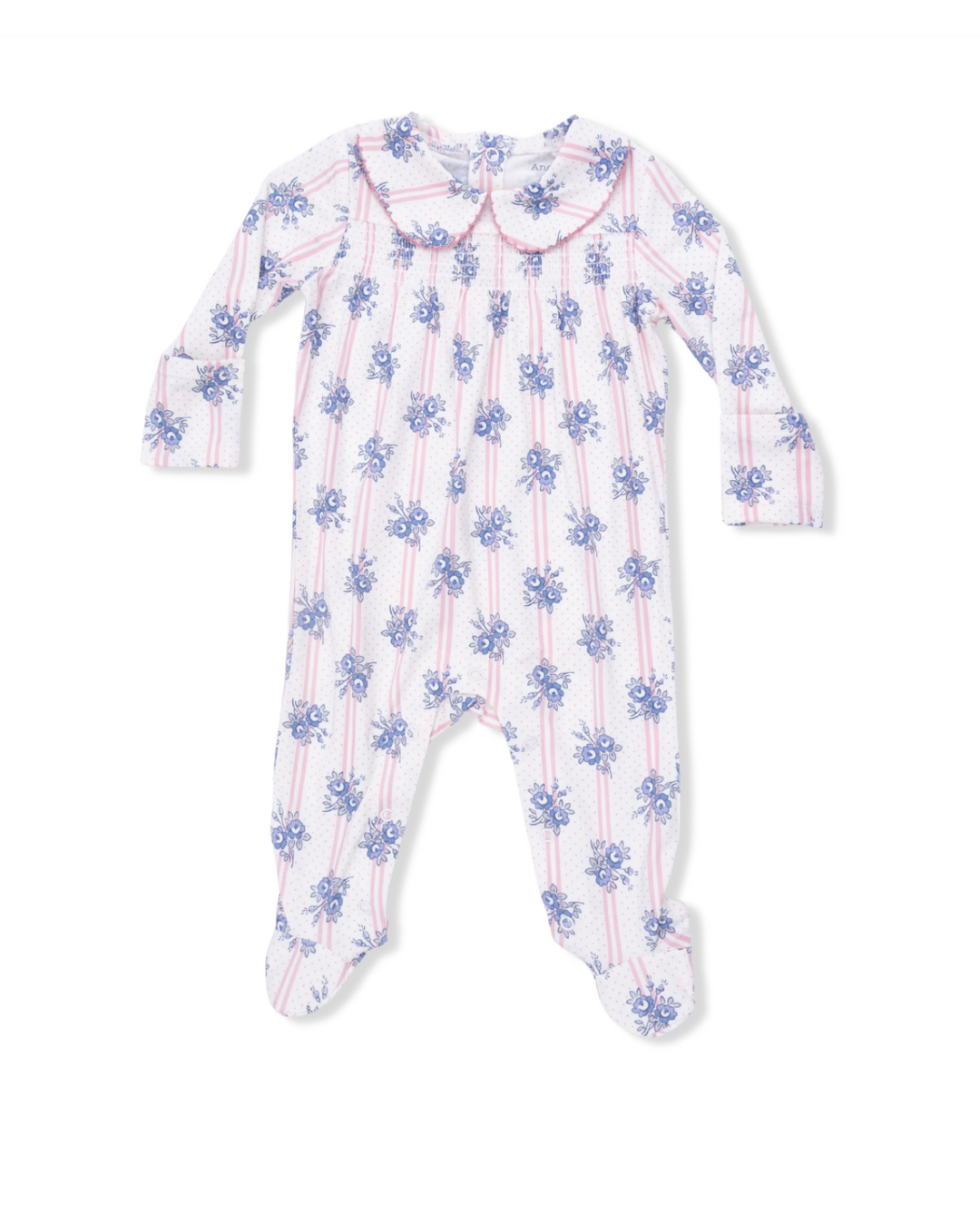Stripe Dot Roses Smocked Peter Pan Snap Footie