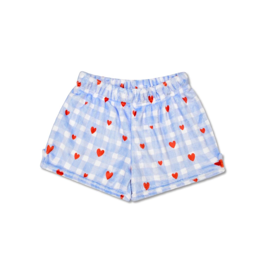 Girls' Gingham Hearts Plush Shorts