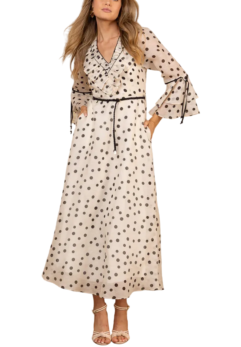 Twirl into elegance with the Aiyana Organza Maxi Dress, where ethereal silk organza meets whimsical charm. This stunning floor-length gown features a delicate ruffle and piping detail at the neckline, adding a touch of playful sophistication. Perfect for special occasions, garden parties, or whenever you want to feel like the most graceful version of yourself. The luxurious fabric drapes beautifully, creating movement with every step.