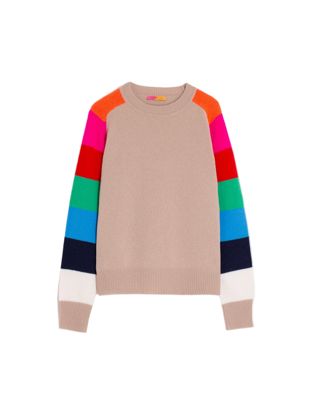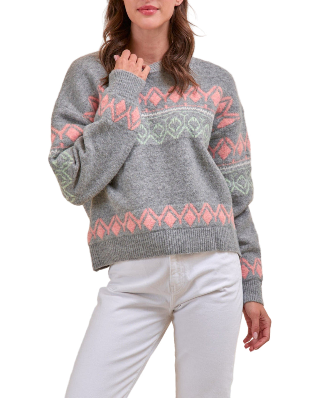 Sasha Floral Pattern Sweater in Taupe/Camel