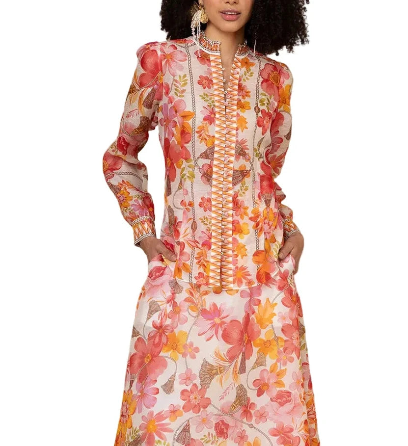 Carla Pintuck Floral Blouse in Cream/Red/Green