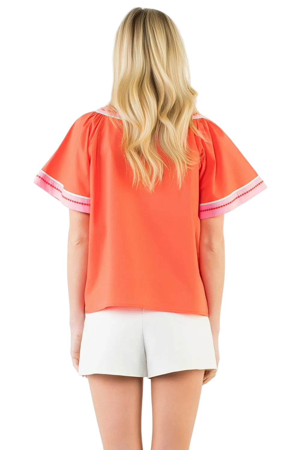 The Ginny V-Neck Top brings effortless elegance with its flattering V-neckline and wide, flowing sleeves that frame the shoulders beautifully. Finished with chic contrast trim detailing, this versatile piece transitions seamlessly from casual weekends to polished weekday looks. The relaxed fit and soft fabric make it a go-to favorite for anyone who refuses to sacrifice comfort for style. Layer it, tuck it, or wear it solo—this top does it all with understated charm.