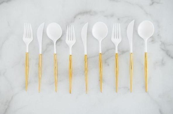 The Bella line of disposable plastic cutlery by Sophistiplate is a gorgeous and sleek modern design that elevates any table, place setting, or event. Perfect for Birthday Parties, Date Night, Family Gatherings, Holidays, Parties, BBQ's, Outdoor Entertaining, Kids Parties, and more.